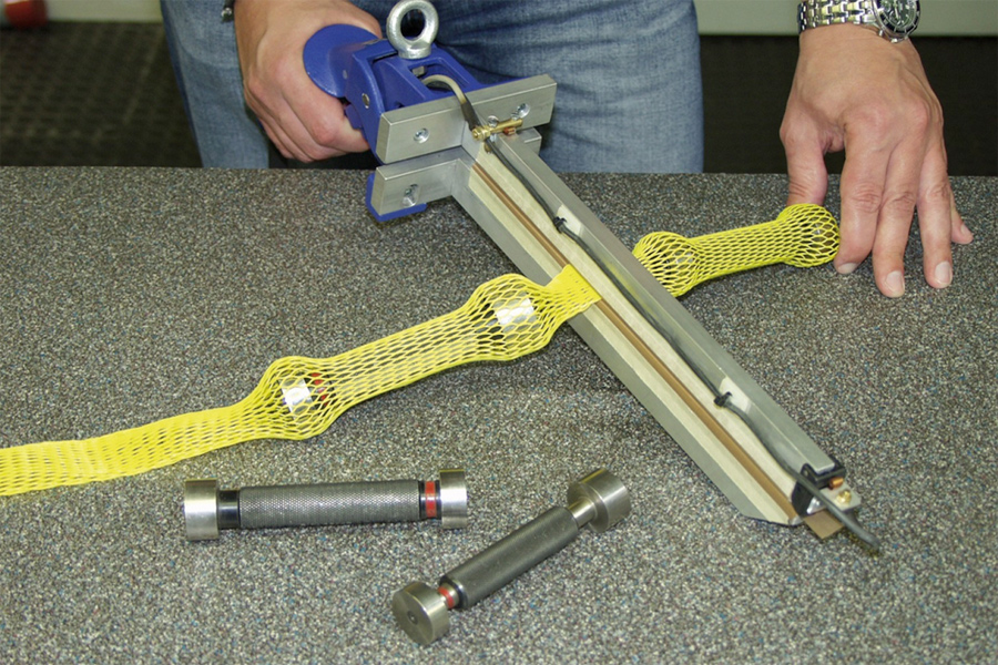 Durch die nach vorne zeigenden Schweißschienen können z. B. Schlauchfolien von der Rolle bequem miteinander verschweißt werden. Ein umständliches Ankleben der Folienbahnen entfällt durch diese handliche Zange.