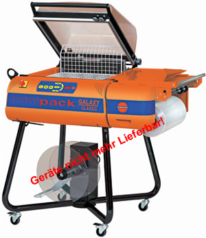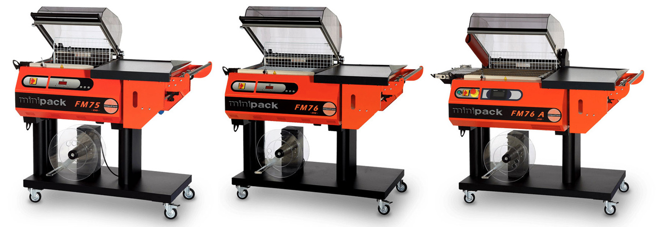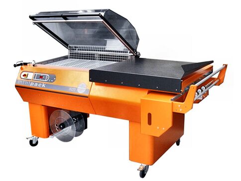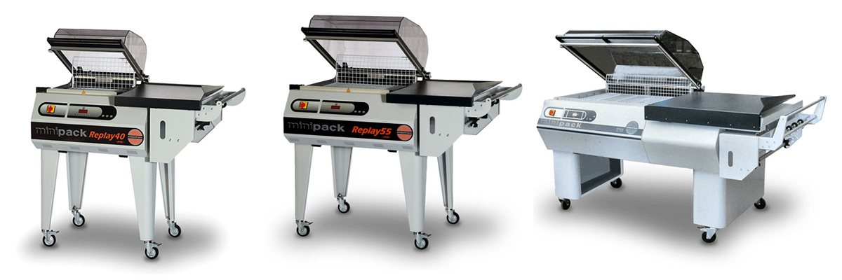 Zum Maschinensystem der Minipack Schrumpfverpackungsgeräte gehören sehr individuelle Modellreihen. Sie arbeiten nach einem patentierten Verfahren, ohne Schrumpftunnel, mit einer Schrumpfhaube, Impulsschweissung und elektronischer Temperaturregelung. Die Maschinen sind einfach zu handhaben, energiesparend, sehr kompakt, leise und immer sofort betriebsbereit.