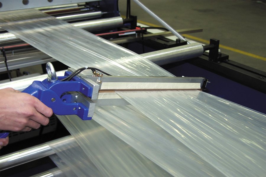 Durch die nach vorne zeigenden Schweißschienen können z. B. Schlauchfolien von der Rolle bequem miteinander verschweißt werden. Ein umständliches Ankleben der Folienbahnen entfällt durch diese handliche Zange.