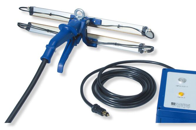 Die Impulszeit wird an der Steuereinheit stufenlos reguliert. Um ungewolltes Verstellen oder auch Beschädigungen am Potentiometer zu verhindern, kann diese im Gehäuse versenkt werden. Durch die Kabellänge von 6 Metern ist Arbeiten in einem sehr großenArbeitsradius möglich.