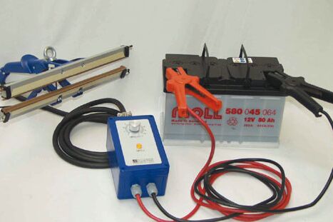 Mit dieser Schweißzange können Folien an fast jedem Ort verschweißt werden. Alles was dazu benötigt wird, ist eine 12 Volt Batterie oder ein Bordstecker (Zigaretten- Anzünder). An diesen Anschlüssen kann der handliche Impulsgeber angeschlossen werden und schon kann das mobile Verschweißen beginnen.