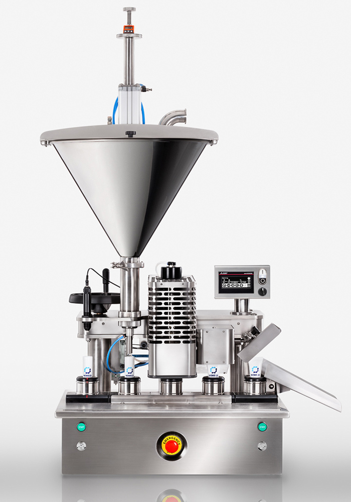 Die semiautomatische Tuben Füll- u. Verschweißmaschine wurde für die Abfüllung und Verschließung von Cremes, Flüssigkeiten oder ähnlichen viskosen Materialien in PE-Tuben, sowie Tuben aus laminierten Kunststoffen entwickelt.