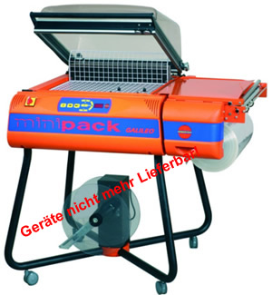 Zum Maschinensystem der Minipack Schrumpfverpackungsgeräte gehören sehr individuelle Modellreihen. Sie arbeiten nach einem patentierten Verfahren, ohne Schrumpftunnel, mit einer Schrumpfhaube, Impulsschweissung und elektronischer Temperaturregelung. Die Maschinen sind einfach zu handhaben, energiesparend, sehr kompakt, leise und immer sofort betriebsbereit.